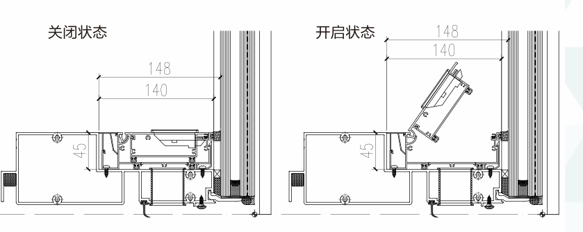 在不影響外立面效果的同時(shí),杜絕了開啟扇的安全隱患。其安裝形式多樣化,可以安裝在橫梁的室內(nèi)側(cè)、嵌入橫梁腔體內(nèi)、橫梁的下側(cè)、